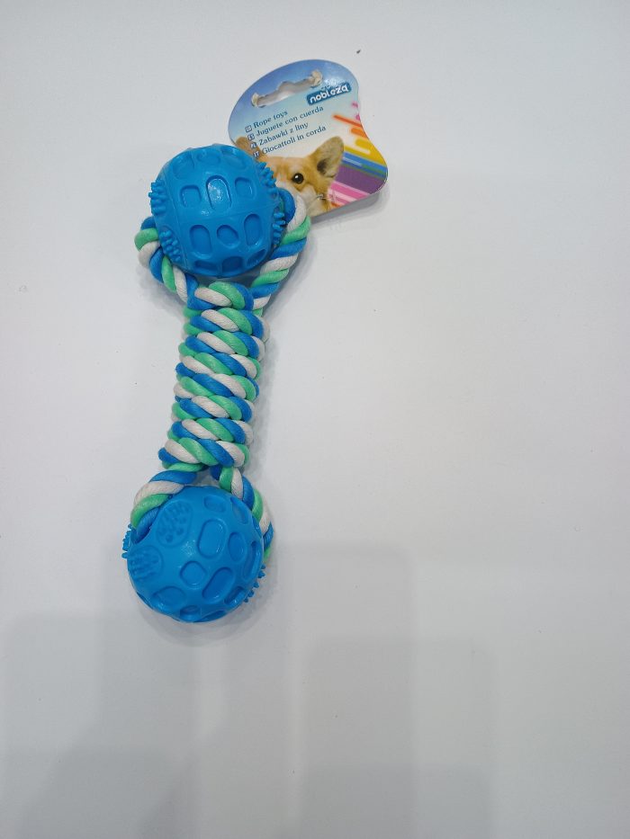 Igračka ima dve loptice od dosta čvrste gume koje su povezane čvrsto umotanim kanapom.